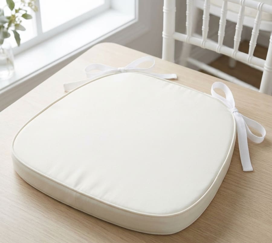 Enhance your formal events with the simple elegance of our Tie-On Chiavari Chair Cushions. These professional-grade chair pads are designed specifically to fit standard Chiavari chairs, providing a finished, luxurious look while ensuring guest comfort. Each cushion is crafted with durable, woven fabric that perfectly complements our Chiavari chair frames.